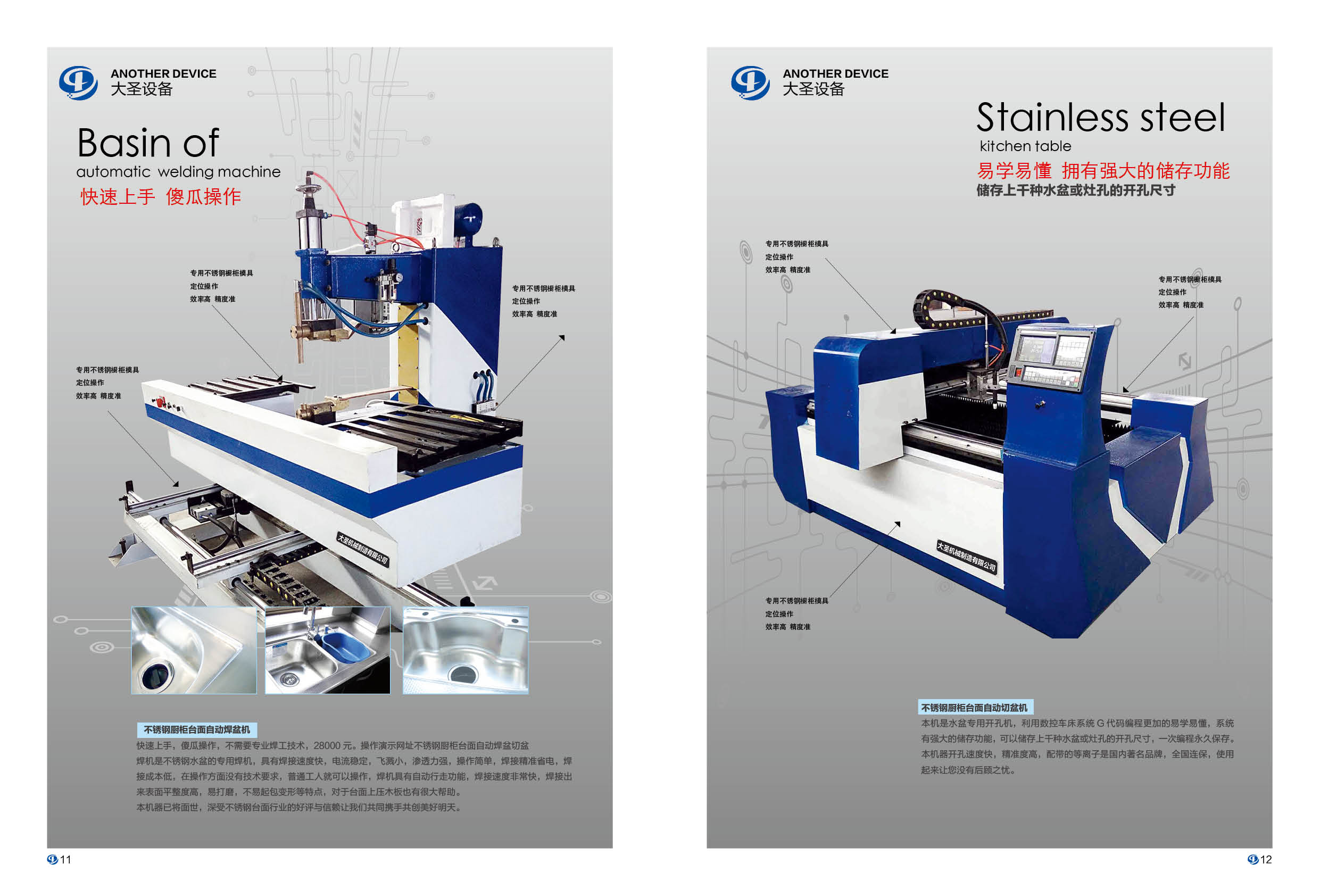 2.不銹鋼櫥柜臺面全自動切水盆機:本機是水盆專用開孔機,利用數控車床系統G代碼編程更加的易學易懂,系統有強大的儲存功能,可以儲存上千種水盆或灶孔的開孔尺寸,一次編程**保存。